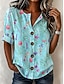 Dámské Košile Košile pro volný čas Letní vrcholy Knoflíky Tisk Květinový Grafika Vinobraní stylové Moderní Krátký rukáv Do V Košilový límec Pod rameny Dlouhé topy Denní Vodní modrá Tmavomodrá Světle