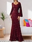 Dámské Délka čaje Černé šaty Krajkové šaty Elegantní Vánoce Párty Bez vzoru Dlouhý rukáv Tričkový Černá Jaro Podzim Zima