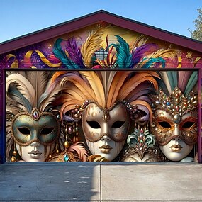 Mardi Gras Kryt garážových vrat Velký závěsný Maska Peří Luxus 3D Vibrující Večírek Outdoor Střelecké pozadí Vchodové dveře Maškarní Bytové dekorace