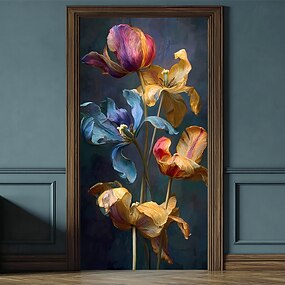 impresionistický umělecký tulipány květinový olejomalba barevné fialová modrá květiny dveře banner zeď gobelín domácí dekorace vchod dekorace obývací pokoj interiér umění venkovní vnitřní