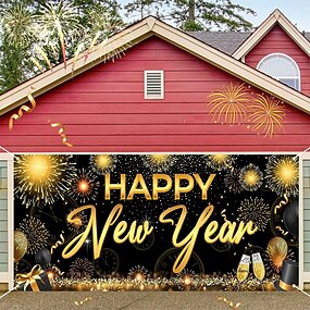 Nový rok gobelín Kryt garážových vrat Velký závěsný šťastný nový rok 2026 Roztomilý 3D Večírek Outdoor Dovolená Střelecké pozadí Yard Bytové dekorace