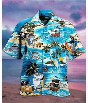 Pánské Žralok Ryby Palma Košile pro volný čas Havajská košile Táborová košile Krátké rukávy Košile Přehnutý Havajské Designové Ležérní Jdeme ven A B C 3D tisk S M L