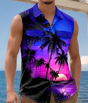 Pánské Kokosový strom Příroda a krajina Tropické rostliny Košile Havajská košile Aloha košile Bez rukávů Letovisko Plážová dovolená Léto Jaro Přehnutý 3D tisk Přední dvě kapsy Košile na knoflíky