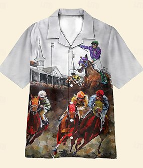 Kentucky Derby Pánské Koňské dostihy Košile Kubánská košile Krátký rukáv Vintage Retro Dovolená Festival Léto Jaro Košile s límečkem Camp 3D tisk Legrační trička Kentucky Derby Šedá