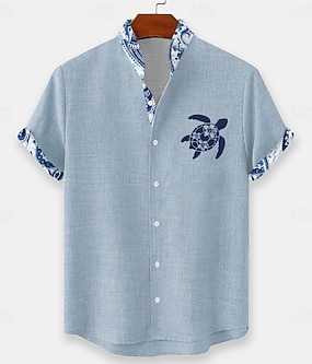 Pánské Zvíře Želvy Mořští tvorové Havajská košile Košile na knoflíky Košile s límečkem Krátký rukáv Havajské Ležérní Plážová dovolená Léto Jaro Stojáčkový límec 3D tisk Len jako košile Vodní modr