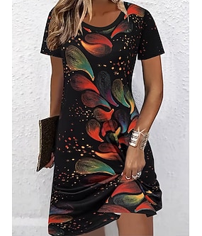 dámské mini šaty boho petite šaty tričko šaty tee šaty A-line šaty letní šaty stylové běžné dovolená denní prázdninové volné padnutí květinový krátký rukáv kulatý výstřih bílá červená modrá zelená