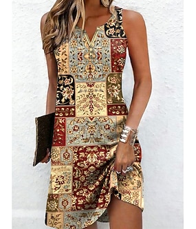 Dámské Mini šaty Letní šaty Tričkové šaty prázdniny Na běžné nošení Cikánský Jdeme ven Běžný Grafika Kašmírový vzor Krátký rukáv Do V Černozlatá popel Černá Rubínově červená Léto Jaro