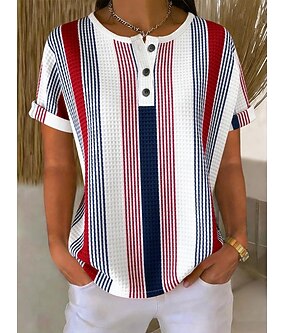 Dámské Waffle T-shirt s potiskem grafiky geometrické vintage stylové klasické krátký rukáv kulatý výstřih pravidelné topy denní modrá fialová oranžová zelená léto jaro