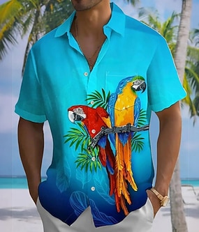 Pánské Zvíře Papoušek Palmový list Košile Havajská košile Táborová košile Krátký rukáv Košile Přehnutý Módní Designové Na běžné nošení Ležérní Denní Venkovní Vodní modrá Jezerní modrá Modrá moře 3D