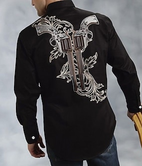 Pánské Grafické tisky Pistole Košile Westernová košile Kovbojská košile Dlouhý rukáv Módní Designové Na běžné nošení Denní Venkovní Podzim zima Přehnutý Tisk Tlačítko dolů Černá Černá / hnědá Hněd