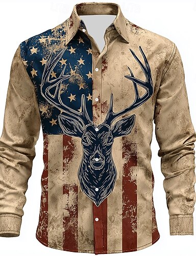 Pánské Sob Americká americká vlajka Košile Košile na knoflíky Dlouhý rukáv Vintage Retro Venkovní Outdoor a turistika Lovecká Jaro Podzim Přehnutý 3D tisk Len jako košile Khaki