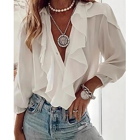 Dámské Košile Halenka Volány Bez vzoru Elegantní stylové Dlouhý rukáv Do V Běžné topy Denní Dovolená Jdeme ven Černá Bílá Světle zelená Trávová zelená Růžová Léto Jaro Podzim