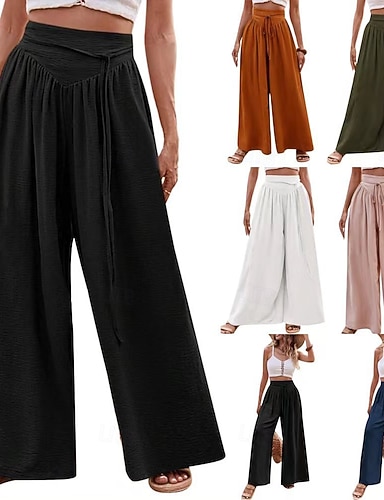 Dámské Kalhoty Letní kalhoty Plážové kalhoty prázdniny Módní Běžné Denní Plná délka Středně vysoký pas Pevná barva Bez vzoru Šňůrky Široké nohavice Pohodlné Rychleschnoucí Yumuşak Vysoká pružnost
