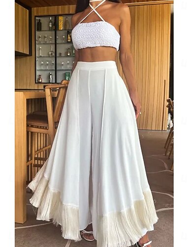 Dámské Zvonové dno Kalhoty chinos Kalhoty Palazzo Elegantní prázdniny Vinobraní Telecí délka Středně vysoký pas Pevná barva Třásně Slátanina Kapsy Pohodlný Prodyšné Neelastické Denní Domů Venkovní