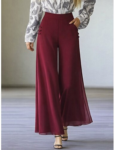 Dámské Široké nohavice Kalhoty chinos prázdniny Módní Šik ven Plná délka Vysoký pas Bez vzoru Kapsy Pohodlný Pohodlné Yumuşak Neelastické Venkovní ulice Vodní modrá Černá Rubínově červená Trávov