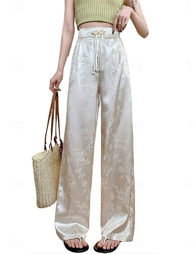 Dámské Široké nohavice prázdniny Vinobraní Etnický styl Plná délka Vysoký pas Květinový Grafika Neelastické Dovolená Formální ulice Tmavěhnědá rýžově bílá Bílá Léto Jaro Volný