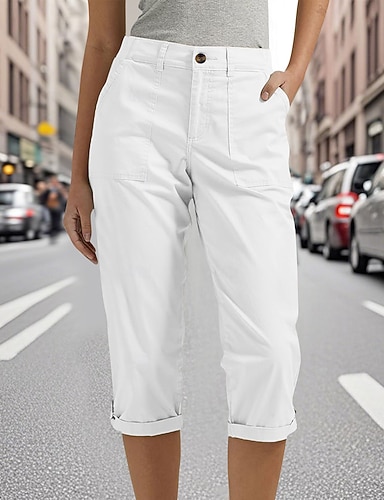 Dámské Capri kalhoty Imitace bavlny a lnu Kalhoty chinos Kraťasy prázdniny Šik ven Na běžné nošení Délka kolen Středně vysoký pas Bez vzoru Kapsy Elastický pas Prodyšné Neelastické Denní Venkovn