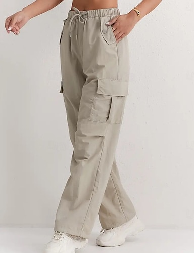 Dámské Kargo kalhoty Kalhoty Kalhoty pro volný čas prázdniny Módní Běžné Denní Plná délka Vysoký pas Pevná barva Bez vzoru Šňůrky Kapsy Široké nohavice Pohodlné Rychleschnoucí Yumuşak Neelastické