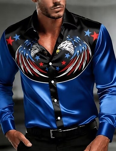 Pánské 4. července 250. výročí USA Orel Americká vlajka Košile Saténová košile Košile na knoflíky Dlouhý rukáv Vlastenec Venkovní Festival Léto Jaro Přehnutý 3D tisk Vodní modrá
