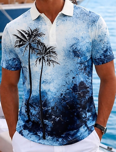 Pánské Palma Havajské polokošile Krátký rukáv Polo tričko Košile s límečkem Na běžné nošení Oblečení na atletiku Oblečení na dovolenou 3D tisk Knoflíky Prodyšná síťovina Jaro léto Vodní modrá Světl