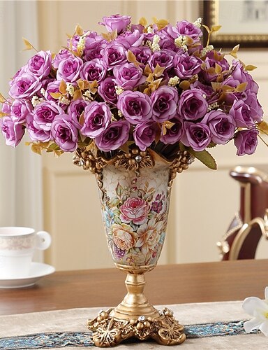 Sada vintage květinových aranžmá z evropské umělé pryskyřice, váza, umělá květina, luxusní bytová dekorace, stolní květinové aranžmá do obývacího pokoje, kanceláře, hotelu, vstupní haly, retro