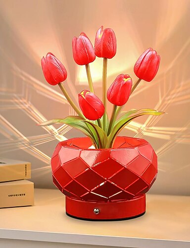 Narozeninové dárky pro ženy, červené tulipány, květinová dekorace do domácnosti, dotyková stolní lampa, 3barevné stmívání, dobíjecí bezdrátové malé noční světlo na festival, dárky k nastěhování pro