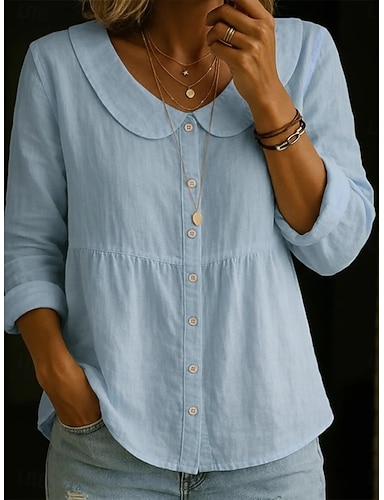 Dámské Halenka Pevná barva Vinobraní Denní stylové Dlouhý rukáv Límec Petera Pana Běžné topy Denní Vodní modrá Bílá Světlá růžová Oranžová Trávová zelená Léto Jaro