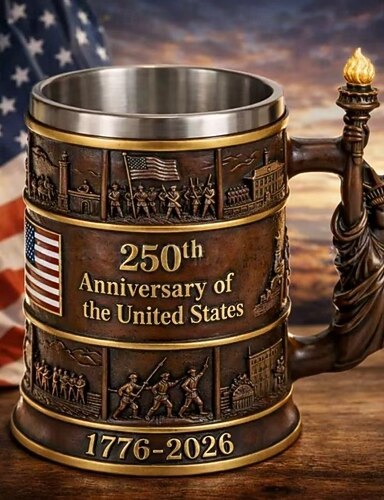Hrnek k 250. výročí USA, ručně vyrobený pryskyřičný vlastenecký korbel s uchem Sochy Svobody, 300 ml/10 oz, sběratelský pamětní hrnek z USA, 1776–2026, vlastenecké dárky