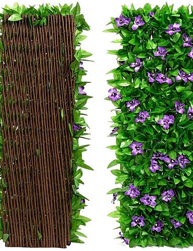 Rozšiřitelný umělý plot z břečťanu a orchidejí s realistickými zelenými listy, odolný dřevoplastový materiál, bezúdržbová venkovní zahradní dekorace, ideální na terasu, balkon, dvůr