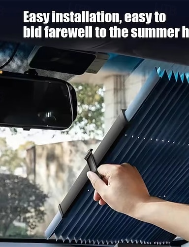 Zatahovací sluneční clona na čelní sklo auta, univerzální harmoniková skládaná sluneční clona na přední okno, blokuje UV záření &Tepelná, snadná instalace s přísavkou, automatická roleta pro auto,