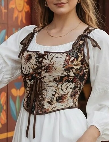 Středověké Renesanční Cottagecore Korzet Živůtek Viking Rolník Šněrování Květinový Žakár Maškarní kostým Dámské Keltské Fantazie předvečer Všech svatých Karneval Výkon LARP Ren Faire Dospělé Korzet