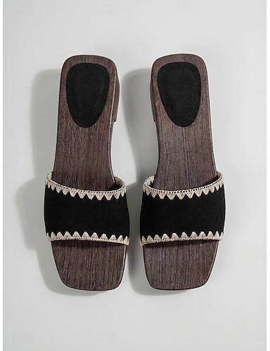Dámské černé ploché sandály - pohodlné sandály s hranatou špičkou na dovolenou v přírodě, letní cestování &neformální procházky po pláži