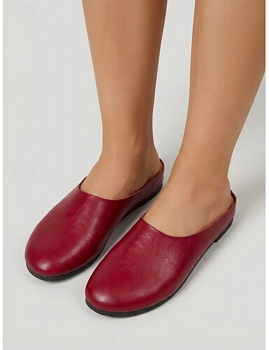 Dámské červené pantofle z pravé kůže – minimalistické pohodlné pantofle, lehké kožené pantofle na cesty, nošení do interiéru &denní ležérní outfity