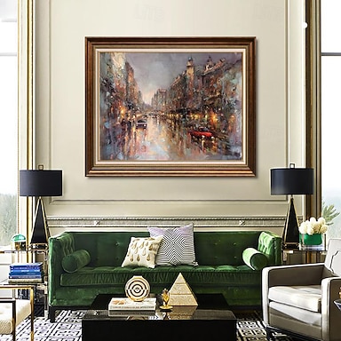 ručně vyráběné ručně malované olejomalba nástěnné umění abstraktní déšť město ulice krajinomalba domácí dekorace výzdoba srolované plátno bez rámu nenatažené
