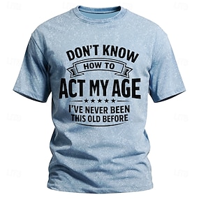 Pánské oblečení, které se neumí chovat, v mém věku nikdy předtím nebyl tak starý, slogan, vtipné, humorné, acid wash, vintage, streetwear, tričko s grafikou, krátký rukáv, denní nošení, značkové