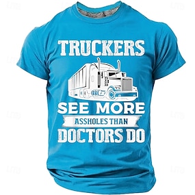 Pánské kamionisty vidí víc idiotů než doktory kamion velké nákladní auto vtipné humorné sarkastické tričko s grafikou regular střih kamionová doprava pracovní oblečení značkové oblečení oblečení