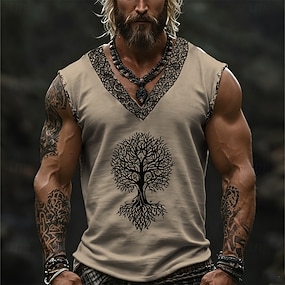 Pánské Bez rukávů Vesta Top Tílka Košile bez rukávů Bez rukávů Do V Léto Strom Vinobraní Designové Základní Tisk Dovolená ulice Jdeme ven Bílá Modrá Trávová zelená Top tričko pro muže