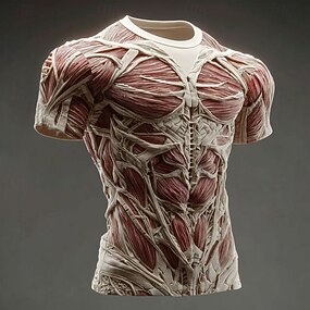 Pánské Sval 3D tisk 3D Simulace Tričko Krátký rukáv tričko 3D tisk Tričkový Košile Přehnaný Designové Denní Klub Párty Bílá Rubínově červená Šedá Léto Jaro Celý rok Oblečení S M L XL XXL XXXL