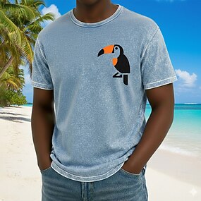 Pánské Papoušek Havaj Tričko Minerální mycí tričko Krátký rukáv tričko Kyselé mytí Tričkový Košile Vintage Retro Ležérní Plážové Cestování Vodní modrá Fialová Šedá Léto Jaro Oblečení M L XL 2XL 3XL