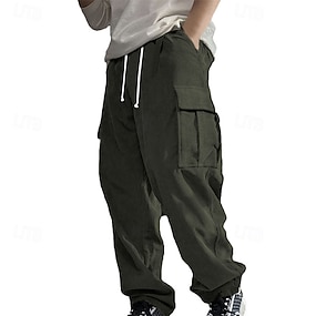 Pánské Tepláky Kordurové kalhoty Tepláky s rovnými nohama Kapsy Šňůrky Elastický pas Bez vzoru Pohodlné Prodyšné Venkovní Denní Jdeme ven Módní Na běžné nošení Černá Khaki