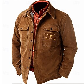 Pánské Kovbojské Kordurová košile Košile bunda Overshirt Dlouhý rukáv Vinobraní Západní Venkovní ulice Na den Podzim zima Přehnutý Košile s límečkem 3D tisk Knoflíky 2 kapsy 1ks Hnědá