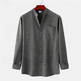 Pánské Košile plátěná košile Čínská košile s límečkem Košile s mandarinkovým límečkem Košile pro volný čas Košile na knoflíky Bez vzoru Dovolená Havajské Rubínově červená Tmavě zelená Khaki Dlouh
