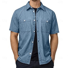 Pánské Košile Košile pro volný čas Košile na knoflíky Košile ze 100% bavlny Kyselé mycí tričko Černá Světle zelená Fialová Khaki Armádní zelená Krátký rukáv Bez vzoru Košilový límec Ležérní Denní