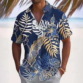 Pánské S lístky Tropické rostliny Havajská košile Košile na knoflíky Aloha košile Krátký rukáv Havajské Letovisko Dovolená Oblečení na pláž Léto Jaro Přehnutý košile s límečkem Žlutá