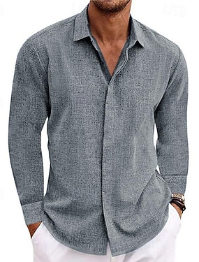 Pánské Košile Lněná košile Letní košile Košile pro volný čas Plážová košile Košile na knoflíky Bez vzoru Dovolená Ležérní Černá Bílá Světle zelená Světlá růžová Dlouhý rukáv Límeček Léto Celý rok