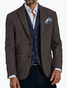 Pánské Tweed Blazer Zářezový límec Retro Klasické Smrčkový steh Blazer Hnědá Standardní uložení Single Breasted Dvě tlačítka