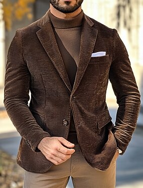 Pánské Kordurová bunda Zářezový límec Módní retro Jednobarevné Çizgi Blazer Hnědá Na míru Single Breasted Tři knoflíky