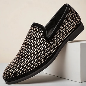 Pánské společenské boty z umělé kůže se zlatým vzorem – elegantní mokasíny na svatbu, večírek a večerní události