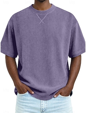 Pánské Waffle Henley košile Trička Krátký rukáv Pevná barva Bez vzoru Módní Designové Na běžné nošení Barevné bloky Knoflíky Henley Venkovní Ležérní Denní Léto Jaro Celý rok Vodní modrá Hnědá Khaki