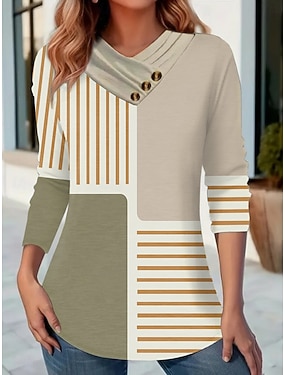 Dámské tričko s krátkým zipem a dlouhým rukávem pohodlné grafika s geometrickými pruhy vintage stylové pravidelný výstřih denní žlutá červená modrá zelená jaro podzim zima